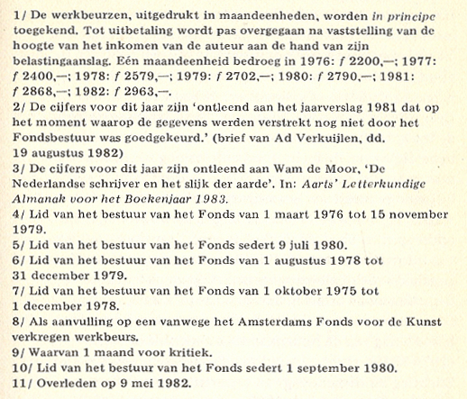 Commentaar: Artikel van Alfred Kossmann (1922-1998), die, zo bleek uit later onderzoek van Peter Vleesch Dubois en uit Aarts Almanak '83 , vanaf 1969 t/m 1982 elke jaar werkbeurzen kreeg, of van het Fonds voor de Letteren of van het Amsterdamse Fonds voor de kunst.