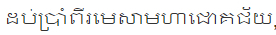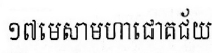 Hoewel de fonts verschillen, gaat het om dezelfde karakters. In Damens versie ontbreken de eerste karakters van de originele versie. De vertaling van het origineel is: 'De glorieuze 17de april' - de dag dat de Rode Khmer de Cambodjaanse Phnom Penh binnentrok. Hoe kan dat? Het antwoord is simpel: in Cambodja geeft men telwoorden als 'vijftien', 'zestien' en 'zeventien' weer als 'tien-vijf', 'tien-vijf-één' en 'tien-vijf-twee'. Of, chiquer, als 'vijf-tien', 'een-vijf-tien' en 'twee-vijf-tien'.