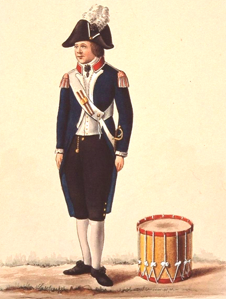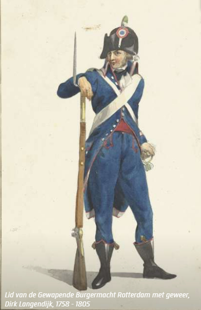 | Nieuw: Sander van Diepen. Tussen verandering en continuïteit. De Bataafse departementen 1799-1806. Bachelorscriptie, Leiden, 2015. Handleiding tot den Burger Wapenhandel voor de Bataafsche Gewapende Burgermacht. Ingericht volgends het REGLEMENT van EXËRCITIE voor de staande Armée van de Republiek, bij het COMMITTÉ tot de ALGEMEENE Zaaken van het Bondgenootschap te Lande, den 25 February 1796. Geärresteerd : EN Ingevolgde een besluit der Algeeme Vergadering van de volmagtigde Gecommitteerden van Geapende Burgermagten uit de onderscheiden Gedeelten der republiek, in den Haage, uitgegeeven. IN DEN HAAGE, By I van CLEEF, Boekhandelaar. M. DCC. XCVI. Het Tweede Jaar de Bataafsche Vryheid. Inleiding (pdf). Eerste hoofdstuk. Over de beginzelen der Exercitie in het algemeen en in het detail (pdf). Hele boek, scans (pdf, 105 MB) Reglement op de exercitien en manoeuvres der infanterie van den 1 augustus 1791 behelzende Isten: De Soldaten-school, en IIden De Pelotons school. Naar het Fransch. [Voorwoord J. van Woestenberg, Kapitein der Artillerie en Genie en opperste Leeraar der Wis en Krijgskundige Wetenschappen aan de Koninklijke Militaire School te Hondsholredijk]. Koninklijke Staats-Drukkerij, Den Haag, 1806 [=1807]. XX, 560p. - Pdf-bestand: reglement_op_de_exercitien_en_manoeuvres.pdf Gedigitaliseerd door Google Books. Veeg weg! - [Bataafsch] Krijgslied (pdf) Staatsregeling voor het Bataafsche volk 1798 http://www.dbnl.org/tekst/_ont002ontw01_01/index.php Nationaal Archief: Militairen in de Bataafs-Franse tijd 1795-1813 http://www.gahetna.nl/vraagbaak/onderzoeksgids/militairen-bataafs-franse-tijd-1795-1813 Mark van Hattem en Mariska Pool. Den deugd der stoffagien. Een onderzoek naar de authenticiteit van uniformen uit de periode 1792-1815. Militair magazijn, [2005]. http://www.militairmagazijn.nl/bronnen/armamentaria/artikel/bronnen_armas_xml_f7ab296d-506b-49e7-883e-48894dce0d38/ Koninkrijk in wording. Een toegang tot de jaren 1813 – 1815. Huygens ING / KNAW, [s.a.]. http://www.koninkrijk1813.huygens.knaw.nl/?page_id=1925 Sander van Diepen. Tussen verandering en continuïteit. De Bataafse departementen 1799-1806. Bachelorscriptie, Leiden, 2015. http://www.bartfmdroog.com/burgermacht/sander_van_diepen_de_bataafse_departementen_1799-1806_2015.pdf Soldaat in de Bataafse Armee http://home.planet.nl/~awaan/html/soldaat_in_de_bataafse_armee.html ![]() Collectie Rijksmuseum https://www.rijksmuseum.nl/nl/collectie/RP-T-00-1756 ![]() Uniform van een tamboer der gewapende Burgermacht, ca. 1797. Regionaal Archief Dordrecht http://beeldbank.regionaalarchiefdordrecht.nl/index.cfm/ search/detail/id/3C0A3A64505693014B4DCD8025EE996E/showbrowse Liederen De Bataafsche Burgermacht herstelde de orde of overwon danwel verloor glorieus in: Bourtange, 2016 Loevestijn, 2017 Alphen aan de Rijn, 2017 Hollandscheveld, 2017 Bergen (NL), 2017 Austerlitz (NL), 2017 |