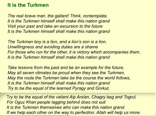 My resident of solitude, my everything, my beloved, my shining moon My friend, my privacy, my everything, my shah of beautifuls, my sultan My life, my existance, my lifetime, my wine of youngness, my heaven My spring, my joy, my day, my beloved, my laughing rose. My delight, my wine, my tavern, my lamp, my ligt, my candle My orange and pomegranate and sour orange, my candle of night My plant, my sugar, my treasure, my delicate in world My saint, my Joseph, my everything, my Khan of my heart´s Egypt. My Istanbul, My Karaman, my land of Rum My Bedehşan, my Kıpchak, my Bagdad, my Horosan My long-haired, my bow like eyebrow, my eye full of discord, my patient My blood is on your hands if I die, mercy o my non-Muslim I am a flatterer near your door, I always praise you Heart is full of sorrow, eye is full of tears, I am Muhibbi and I am happy |