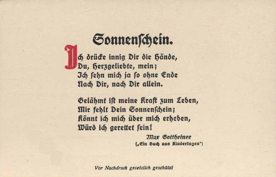 De ansichtkaart Hetzelfde gedicht verscheen eerder in Runsky's dichtbundel Blüthen des Herzens (ca. 1906) onder de titel 'Habe geduld'. De Amerikaanse Duitstalige krant Hermanner Volksblatt (4 september 1908), de Oostenrijkse gazetten Neue Warte am Inn (23 januari 1909), Volksbote (3 maart 1911) en de Salzburgerwacht (6 juni 1913) drukten het vers af. In geen van deze krantenpublicaties was het gedicht ondertekend - wat vreemd is, ook voor die periode. Immers, al vanaf 1886 was internationale wetgeving ter bescherming van werken van letterkunde en kunst van kracht, middels de zogeheten Berner Conventie.