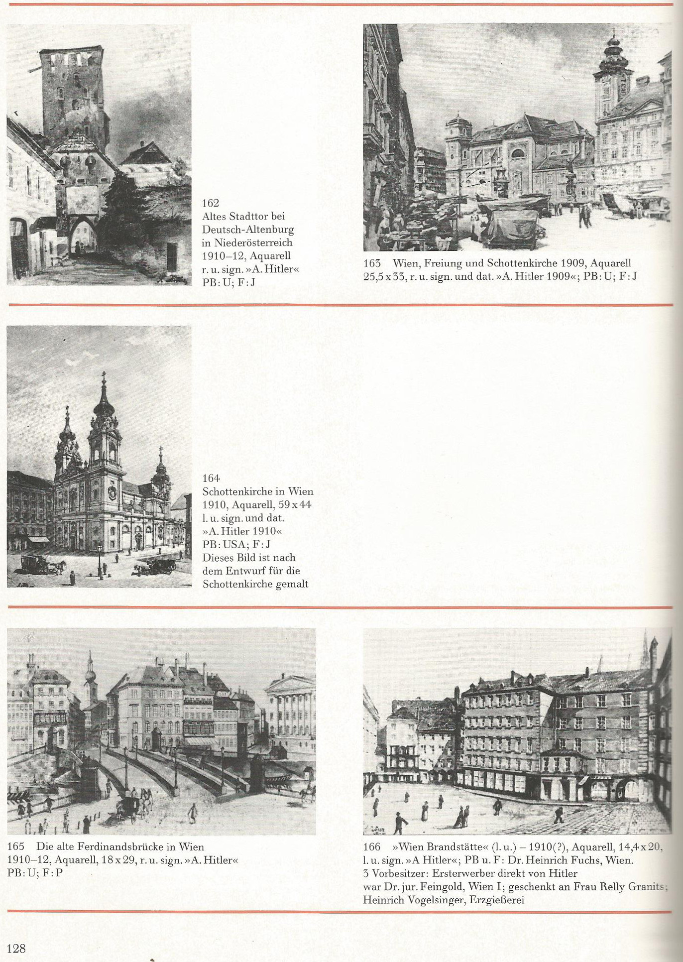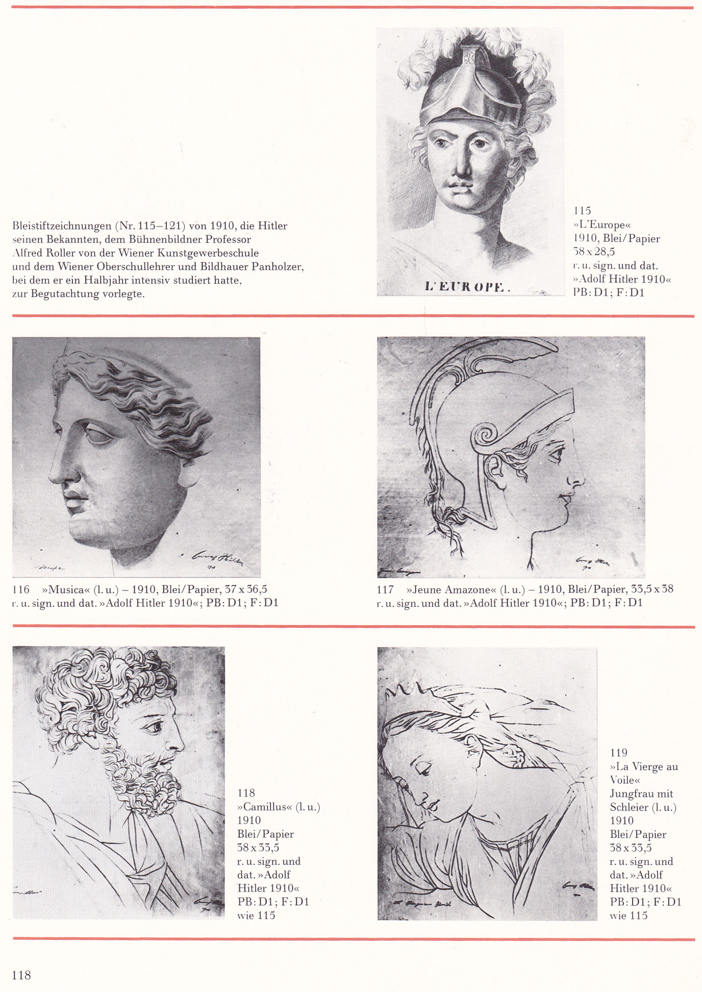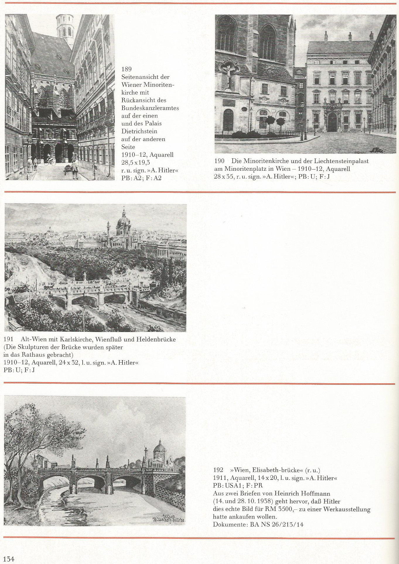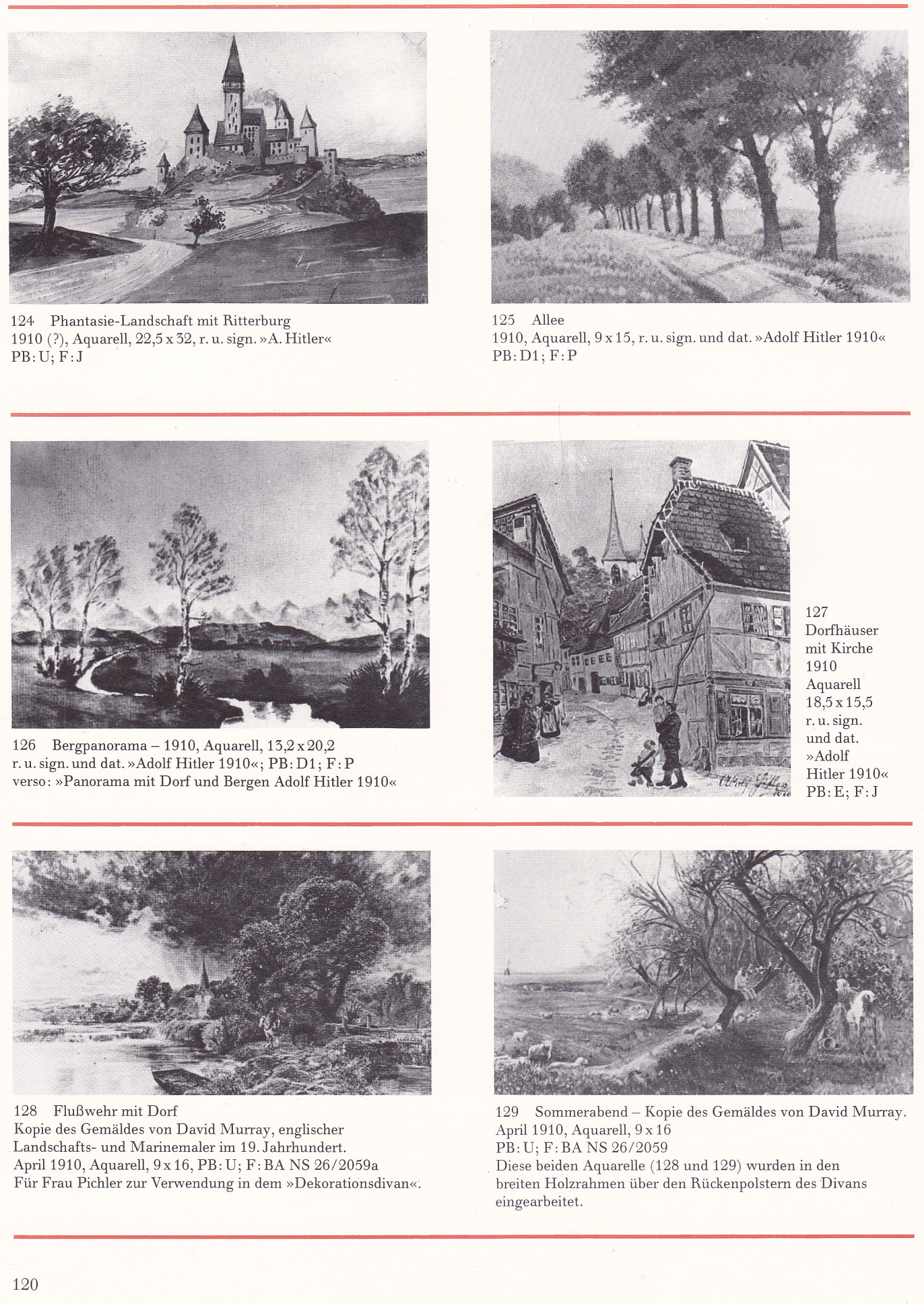 ![]() Every item from the collection (Sammlung] A1 is a forgery - see Dr. Johannes von Müllern-Schönhausen. Every item from the collection USA2 is forged by Konrad Kujau. Numbers with codes 'PB. D1, F: PR' are very likely to be forgeries by Kujau. Everything signed with 'A.H.' or 'Adolf Hitler' is a forgery. Everything from J (Peter Jahn) is highly suspect Everything from S is highly suspect Everything from K is highly suspect Everything from D1 (Stiefel, Stuttgart) is highly suspect Everything from D2 (Speer) is highly suspect All World War 1 watercolors not depicted in Hoffmann’s book Adolf Hitler / Aquarelle (1935) are highly suspect and should be considered as forgeries All watercolors / oilpaintings from 1918 or later are forgeries All portraits and nudes are forgeries Everything with many people on it is highly suspect According to Volker Ullrich (Adolf Hitler. Biographie, 2013 page 62) Hitler made at least three oilpaintings which he sold to Dr. Hans Schirmer in München, late 1913/begin 1914. If Ullrich is correct on this, these are the only three documented oil paintings by Hitler.' In Price the numbers 342, 343 and 344 are presented as these works. It is not known if the depicted works are authentic or forgeries. top of page Page 116, numbers 104-107 (all forgeries) ![]() top of page Page 117, numbers 108-114 (all forgeries) ![]() top of page Page 118, numbers 115-119 (all forgeries) ![]() top of page Page 119, numbers 120-123 (all forgeries) ![]() top of page Page 120, numbers 124-129 (all forgeries) ![]() top of page Page 121, numbers 130-134 (all forgeries) ![]() top of page Page 122, numbers 135-139 (all forgeries) ![]() top of page Page 123, numbers 140-143 (all forgeries) ![]() top of page Page 124, numbers 144-148 (all forgeries) ![]() top of page Page 125, numbers 149-153 (all forgeries) ![]() top of page Page 126, numbers 154-157 (all forgeries) ![]() top of page Page 127, numbers 158-161 (all forgeries) ![]() top of page Page 128, numbers 162-166 (all forgeries) ![]() top of page Page 129, numbers 167-172 (all forgeries, except 170 - possibly authentic) ![]() top of page Page 130, numbers 173-177 (all forgeries) ![]() top of page Page 131, numbers 178-181 (all forgeries) ![]() top of page Page 132, numbers 182-184 (all obvious forgeries, except 184: possibly authentic) ![]() top of page Page 133, numbers 185-188 (all obvious forgeries) With these works the most logical explanation is that the forgers found a postcard, copied it and attributed these copies to Hitler, whilst Peter Jahn 'authenticated' these copies by his making up a story that Hitler himself told him that his paintings of the 'Minoritenkirche' sold very well (Price 188a). The provenance ('Albert Speer') of Price 188 fits the swindlers' story. ![]() top of page Page 134, numbers 189-192 (all obvious forgeries; except 190 - possibly authentic) The over the top provenance history with Price 192 is typical swindler's talk. ![]() top of page Page 135, numbers 193-198 (all obvious forgeries) ![]() top of page Page 136, numbers 199-200 (all obvious forgeries) Comment at 200A: Dr. Heinrich Fuchs was one of the 'certificate of authenticity' swindlers active in the Hitler forgery industry, in the 1970's. ![]() top of page |