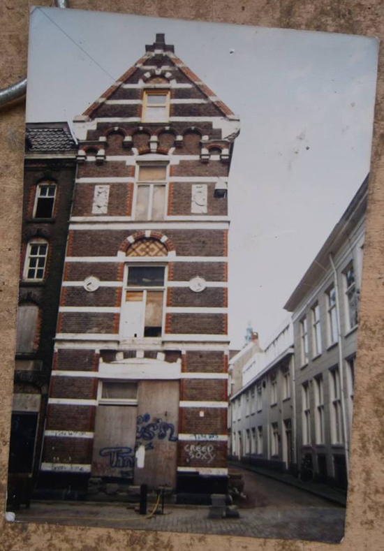 De 'studentenflat' - de bijnaam van het pand in het verlengde van Oude Boteringestraat 10, op de hoek van de Poststraat (zuid) en Poststraat (west). Helemaal bovenin woonde tot december 1989 Marco. |